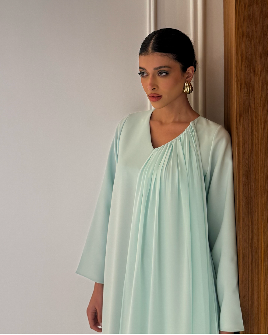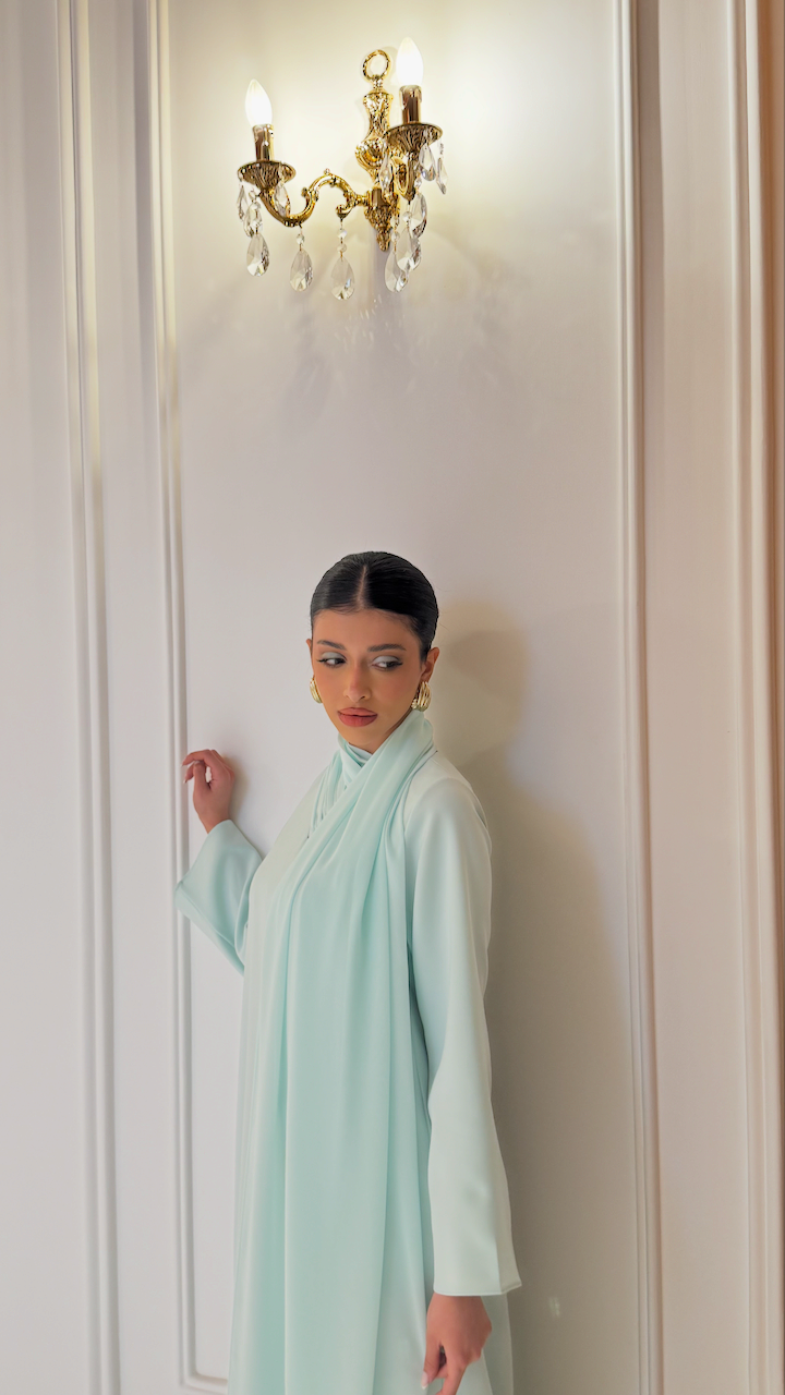 Crepe dress with chiffon shawl It is done according to the customer's measurements Orders are non-refundable and non-exchangeable. Order processing and delivery takes 7 to 10 days dry cleaning