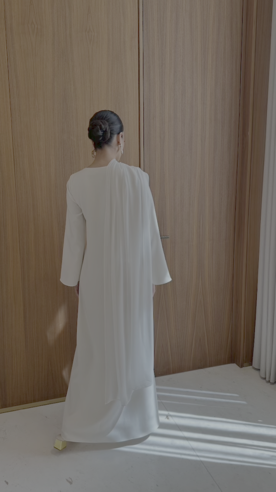 A-line dress made from luxurious Spanish crepe chiffon shawl The dress is made according to the customer's request and measurements. No refunds or exchanges Order processing and delivery takes 7 to 10 days